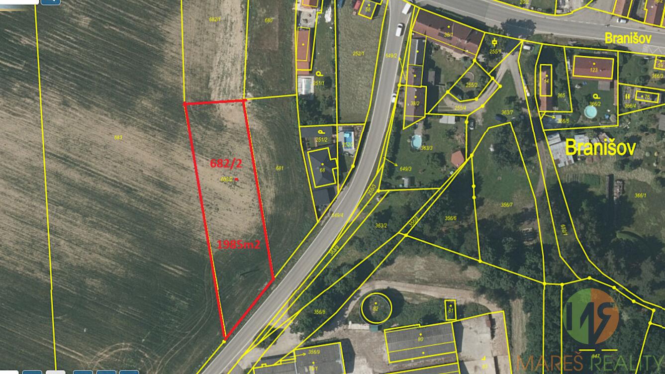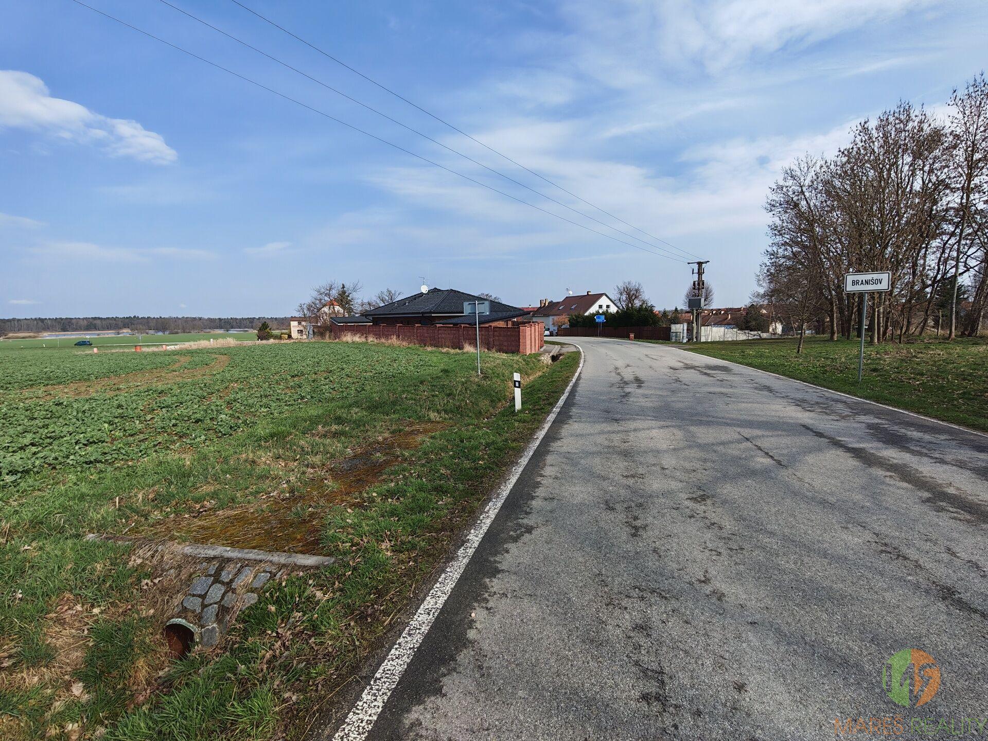 Pozemek se nachází na okraji obce Branišov, 5 minut autem od Českých Budějovic. Základní občanská vybavenost je v obci Dubné 2,5km nebo v okrajové části Českých Budějovic 4,5km. Zastávka linkového autobusu je 250m od pozemku. Do 2 let bude v provozu cyklostezka z Českých Budějovic do Dubného. Výhodou pozemku je jeho rovinatý terén, dále tvar obdélníku s rozměry, které i po realizaci stavby budou nabízet dostatek prostoru kolem domu. Realizace návrhu na zahradu může tedy zahrnovat veškeré obvyklé prvky odpovídající běžnému standartu aktivního venkovního odpočinku a relaxace. Z pozemku se Vám otevírají malebná panoramata výhledů na nejvyšší vrchol Blanského lesa Kleť, obec Dubné a okolní přírodu.